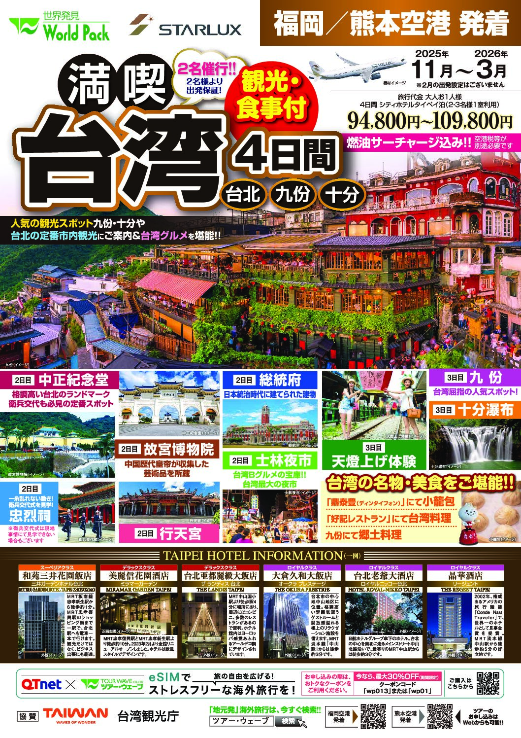 スターラックス航空 満喫台北 4日間(熊本発着...