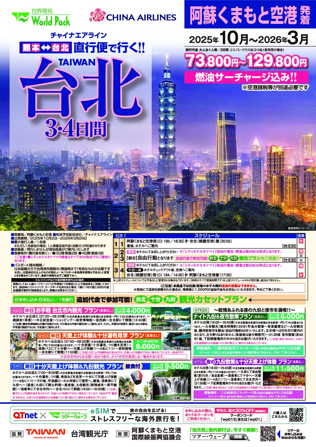 チャイナエアラインで行く!台北3・4日間(熊本...