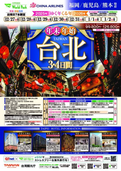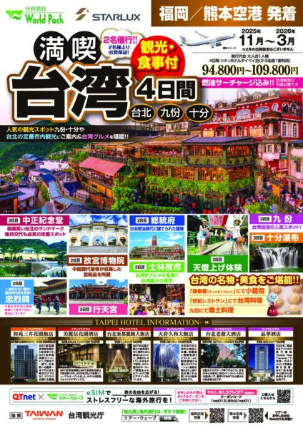台湾・韓国・ハワイ・アメリカなど海外ツアーも幅広く取り扱っています。