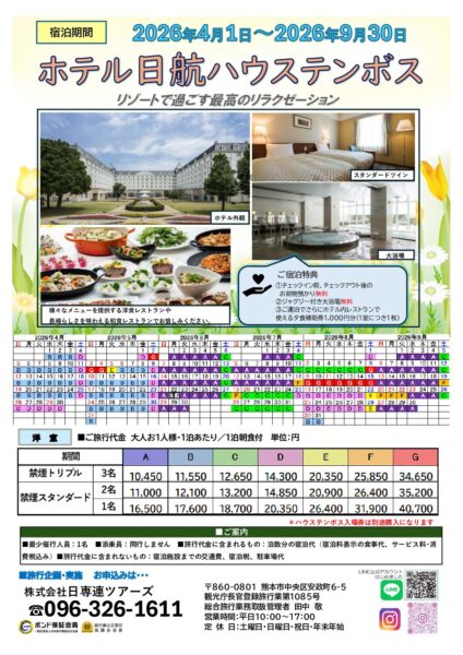 熊本を拠点とする日専連ツアーズは、国内外の多彩な旅行プランをご提案する旅行会社です。