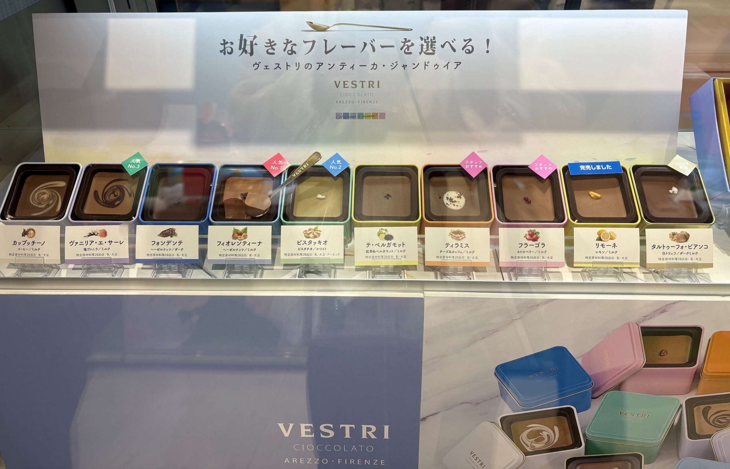 私の今回の楽しみはVESTRIです。味は10種類ある中のティラミスとヴァニリア・エ・サーレを選びました!