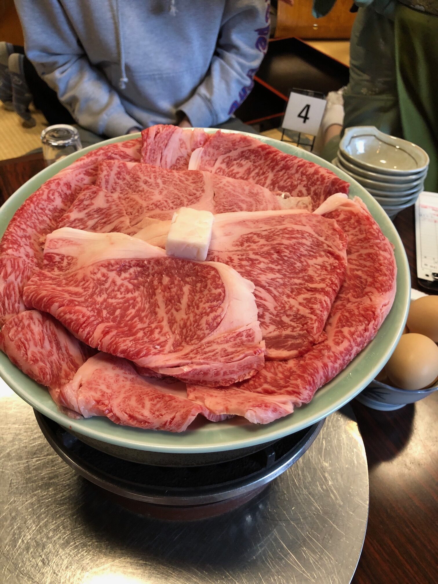 旅の最後は松阪牛のすき焼きです。ちなみに松阪牛は「まつさかうし」と読みます。