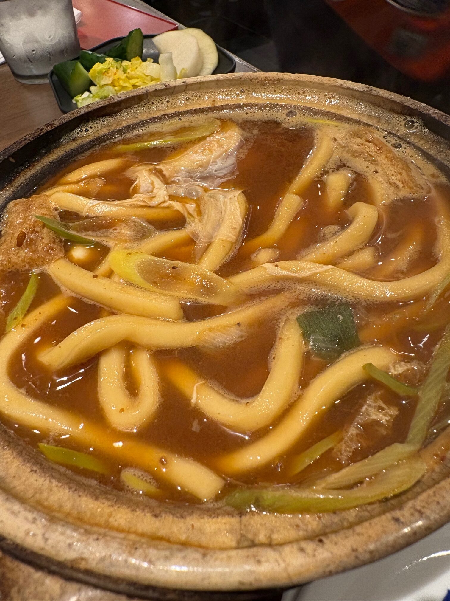 山本屋の味噌煮込みうどん、麺がかなり固い独特の食感ですが美味しかったです。
