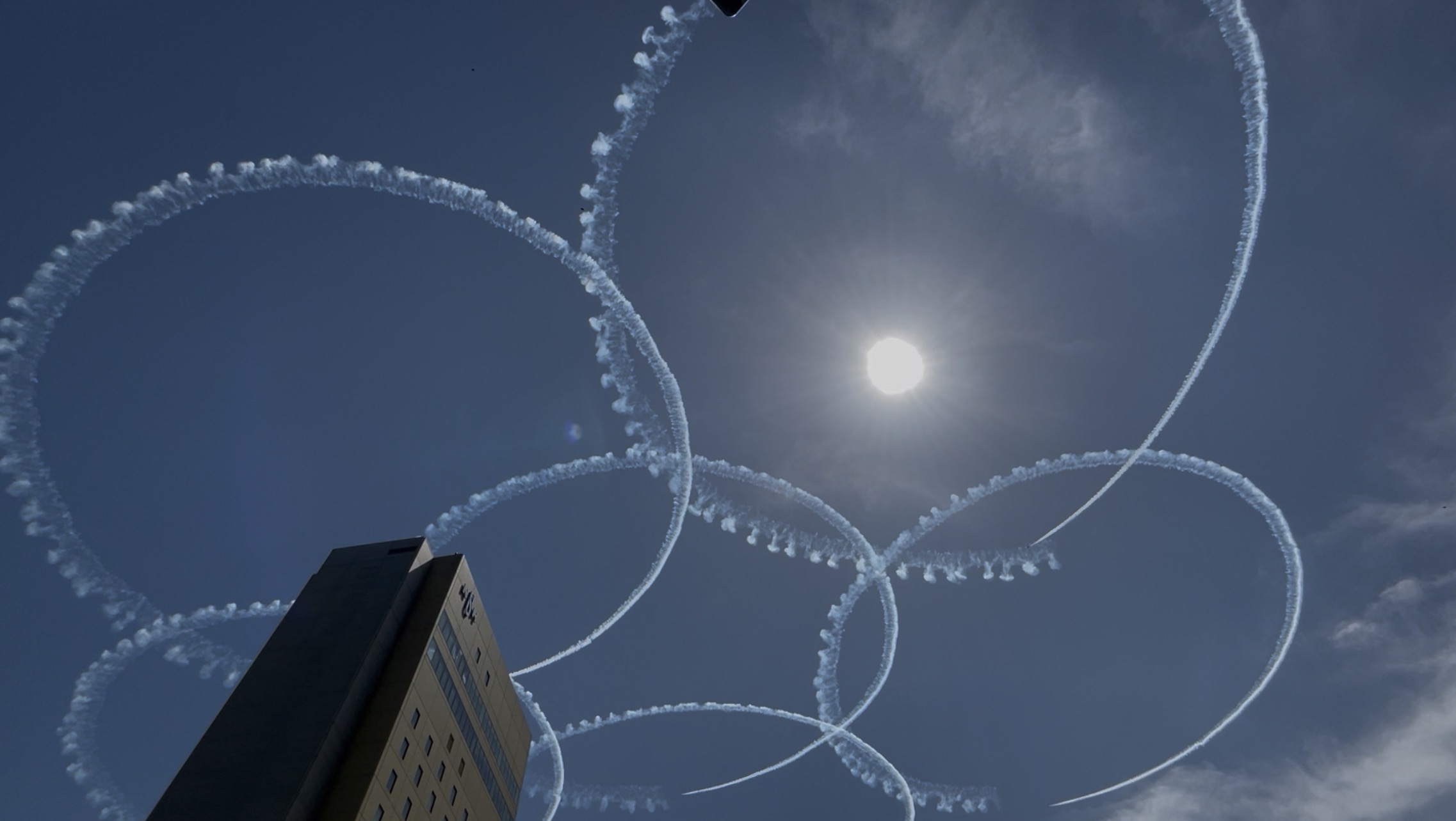 熊本地震から10年 ブルーインパルスがまた熊本に来てくれました!! 折角なので、二の丸公園に行こうとしたのですが、 渋滞と駐車場が見つからず、二の丸公園は断念。 ですが、しっかり目に焼き付けることが出来ました。 見ていると元気が出てきますよね。 たくさんの方々が見ていたようです。 ぜひ、また来て欲しいですね。